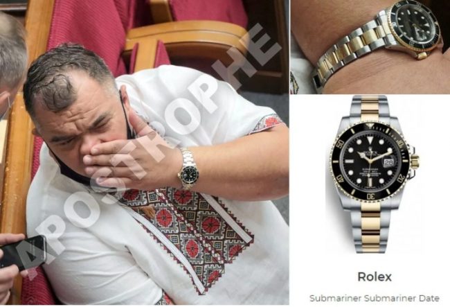 Народный депутат Андрей Задорожный (фракция «Слуга народа») пришел в Верховную Раду с часами Rolex Submariner, стоимость которых составляет от 17 до 24 тысяч долларов (от 478 до 675 тысяч грн).