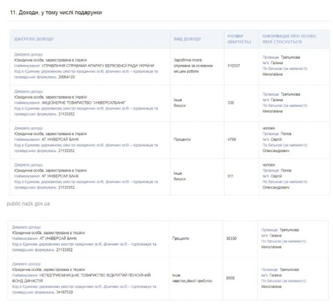 Добавим, в декларации за 2020 год Третьякова указала 510 337 гривен заработной платы. В среднем это около 42,5 тыс. гривен на месяц.