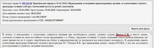 На днях в судебном реестре появилась прекрасная решение. По делу о краже недвижимости через регистратора коммунального предприятия прокуратура настаивала допросить бездомную. Которая не имела постоянного места жительства в Киеве, состояла на учете в наркодиспансере и лечилась от алкогольной зависимости. Прокурор утверждал, что женщина так и не вылечилась, на протяжении последних 15 лет злоупотребляет алкогольными напитками, может привести к его смерти.