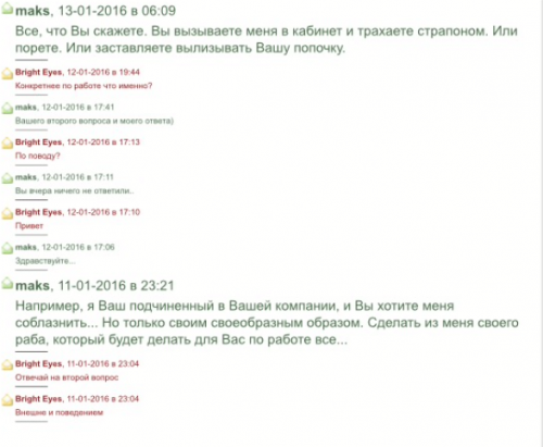 Но представителю золотой молодежи Максиму Конобасу и этого мало. У данного лица присутствуют некие интересные наклонности. Он ищет извращенную любовь на стороне, на различных сайтах знакомств определенной направленности. Из личной переписки Конобаса видно, что поклонник БДСМ усиленно ищет Мадам, которая строго его накажет. Вероятно, стоит прислушаться к просьбе страждущего, и все-таки наказать, лишив депутатского мандата. Такой политик — позор для всей страны.