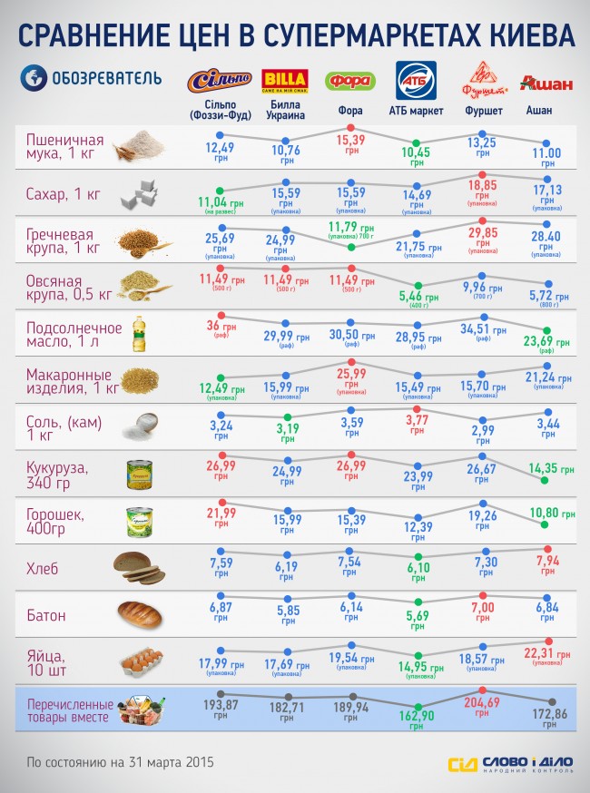 Сравниваем цены на продукты в супермаркетах Украины. Где дешевле?