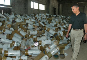 Во всяком случае, такое ощущение было в Донецке, промышленном городе на юго-востоке Украины, в котором мы остановились, чтобы посетить объект, где осуществлялось уничтожение обычных вооружений. Объект находился в сельской местности, ехать к нему надо было по узким дорогам, которые иногда перегораживали стада коз. Директор объекта, полный, веселый мужчина, который напомнил мне чикагского ответственного за вывоз мусора из района, провел нас между рядами темных, похожих на склады строений разной степени ветхости, где группы рабочих ловко разбирали различные наземные мины и танковые боеприпасы, а пустые оболочки снарядов сваливались в кучи, которые доходили мне до плеча. Им нужна помощь США, объяснил директор, так как у Украины не хватает денег справиться со всеми боеприпасами, оставшимися от холодной войны и Афганистана, — при таких темпах, как сейчас, обезвреживание этих боеприпасов может занять шестьдесят лет. А тем временем боеприпасы будут по-прежнему разбросаны по всей стране, будут храниться в сараях без замков, подвергаться воздействию погодных условий, и не только боеприпасы, но и мощная взрывчатка и переносные зенитно-ракетные комплексы — орудия уничтожения, которые могут оказаться в руках военных вождей в Сомали, у тамильских боевиков на Шри-Ланке, у повстанцев в Ираке (pauluskp – не догадывался Барак, что реальность окажется еще хуже).