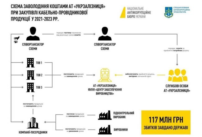 Семь человек получили подозрения в нанесении 117 млн грн убытков. К схеме закупки кабелей по завышенным ценам, причастны в том числе 2 работника АО «Укрзализныця»