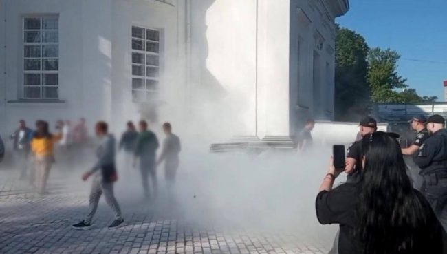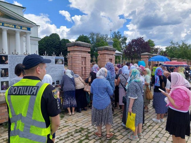 “Утром, 10 июля, согласно решению Белоцерковского городского совета о передаче Преображенского собора в пользование ПЦУ граждане пришли к Спасо-Преображенскому собору с требованиями оставить культовое сооружение”, — отметила Прянишникова.