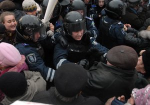 Сегодня, 13 декабря, пострадали два милиционера, которые преграждали путь сторонникам экс-премьера Юлии Тимошенко на территорию Апелляционного суда Киева.