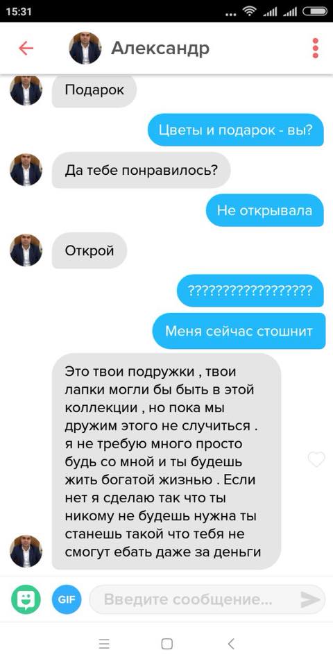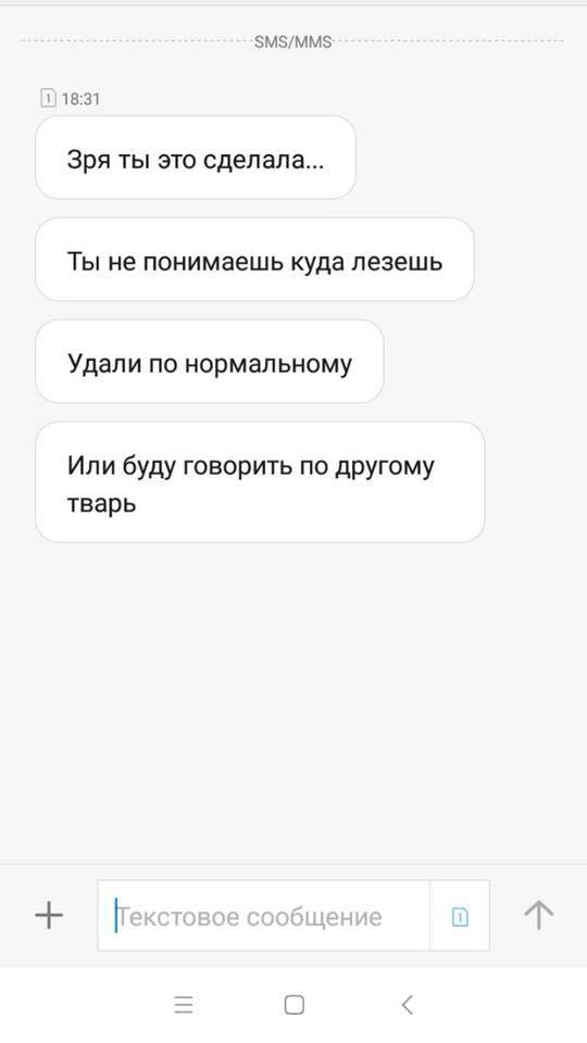 Поле того, как девушка опубликовала переписку, ей пришла еще одна угроза: