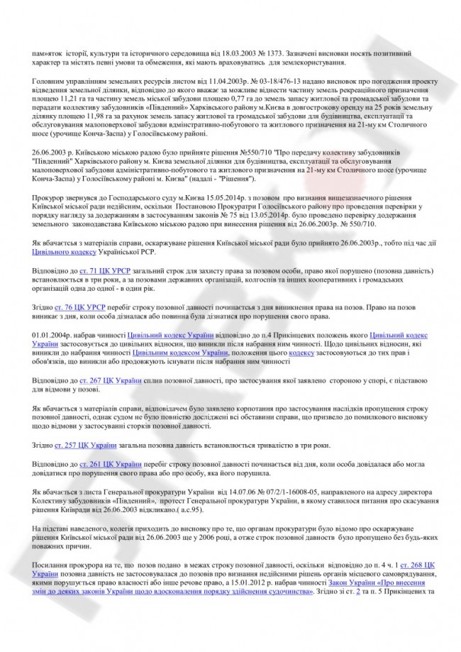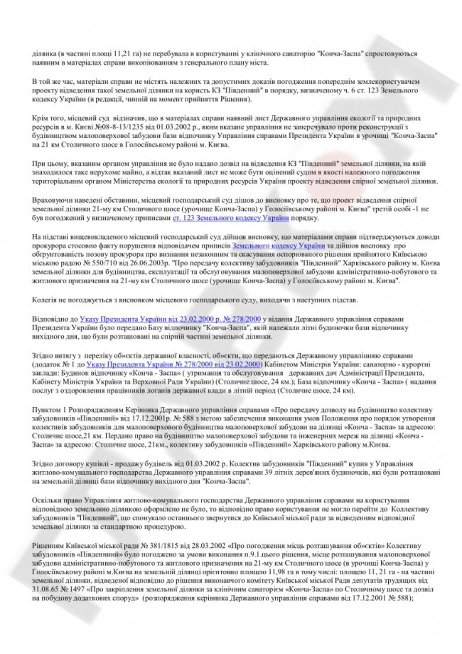 В августе «черную полосу» регионала расширил Хозсуд Киева. Он пришел к выводу, что доводы прокуратуры о нарушении Земельного кодекса при выделении земли под коллективную застройку в Конча-Заспе – обоснованы. Решение столичных властей десятилетней давности было признано незаконным. Участок следовало вернуть киевской общине.