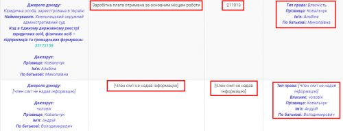 Вместе с тем, мы нашли все компании, где Андрей Ковальчук является учредителем, и сопоставили его взносы в уставные фонды. Оказалось, что в свой бизнес он вложил 4 905 940 грн. При этом, 2 456 000 грн он вложил в компанию ТОВ «ЄВРОЗАЛІЗОБЕТОН» в 2016 году. Где он взял эту сумму — загадка. Вероятно, иного решения, кроме «засекретить» доходы мужа, Альбина Ковальчук найти не могла. Ведь, очевидно, что к происхождению средств возникли бы вопросы.