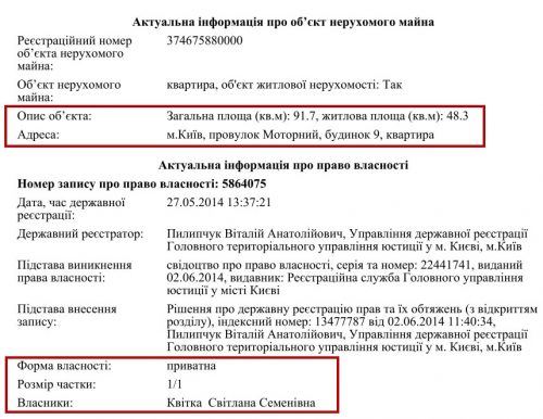 В Реестре также содержится информация и о другой дом — в оккупированном Севастополе. Это помещение было приобретено в 2010 году и до сих пор считается за Светланой Квиткой.