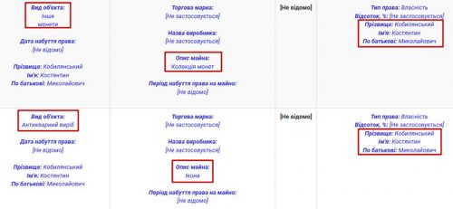 Мног в собственности семьи и ценного имущества. Так, в частности, Константин Николаевич Кобылянский является владельцем коллекции монет и икон. В собственности его жены есть два золотых кольца с камнями, золотые серьги с камнями, часы и картина.