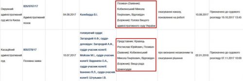 Также в свободном доступе есть жалоба на действия судьи Константина Кобылянского от компании «ЮТЕКСНАФТОГАЗ». В ней указано, что судьей окружного административного суда города Киева Кобылянским К. Н. при рассмотрении дела № 826/4417/16 нарушены сроки рассмотрения дела, рассмотрение ходатайств истца осуществлено предвзято и с грубым нарушением норм процессуального закона.