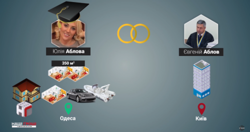 Жена Аблова Юлия — судья Коминтерновского райсуда Одесской области, а в прошлом — прокурор Одесской местной прокуратуры № 3. (Подробно о ней вы можете прочесть в публикации Экс-прокурор, а ныне судья Аблова оказалась долларовой миллионершей при копеечной зарплате).