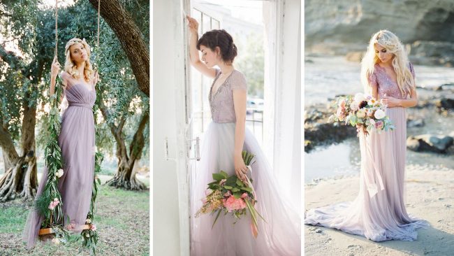 Подружки невесты также отдают предпочтение легким длинным платьям, обычно в один тон. И чаще всего, конечно же, лавандовый.