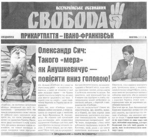 "Зато уже сегодня в Ивано-Франковске активно распространяется фальшивая партийная газета Свобода, в которой представлены искаженную информацию и о партии, и о ее руководстве. Все это - ничто иное, как очередное доказательство: все, что происходит в Ивано-Франковске - одна большая спецоперация власти и силовых структур против ВО Свобода. Власти чувствуют свое будущее поражение, а потому используют грязные черные политтехнологии, любые аморальные принципы, видео и аудио-монтаж и полиграфические фальсификации", - добавили в партии.