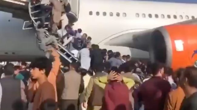 Такая ситуация на взлетной полосе международного аэропорта в Кабуле возникла из—за того, что это единственное место в стране, которое по—прежнему находится под контролем американских войск и только отсюда можно сбежать от нового режима экстремистов «Талибана«. «Лишних» людей снимают с самолета сами же пассажиры, поскольку авиалайнер якобы не может взлететь.