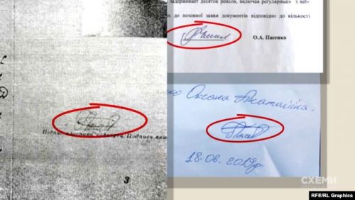 Подтверждением тому, что говорит нам Пасенко, есть его подпись. Вот он стоит на исковом заявлении будто от ее имени, а это подпись, которая Оксана Пасенко оставила на бумаге при нас. И он похож на подписи с ее же паспорта, копия которого была приобщена к исковому заявлению в суд и которая также оказалась в распоряжении «Схем».