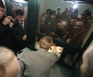 Сотрудники судебной милиции "Грифон" сразу после объявления переноса заседания Печерского суда Киева по рассмотрению "дела Тимошенко" оттеснили телеоператоров из зала, у которых еще продолжалась прямая трансляция заседания.
