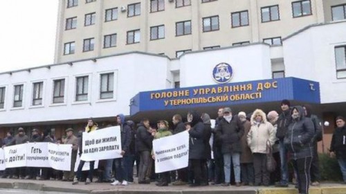 Более стапятидесяти людей пришли пикетировать здание Главного управления ДФС в Тернопольской области. Поддержать протестующих, требовавших прекратить давление на аграриев Тернопольщины приехал и "Автомайдан" из Киева, сообщает "Фраза.юа".