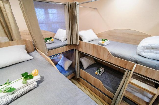 Стоимость номеров варьируется в зависимости от количества проживающих в комнате. В зависимости от своих предпочтений и возможностей, гости могут разделить спальню с одним или несколькими людьми, или же переночевать в одиночку. Для каждого приезжего присмотрена комфортабельная кровать с современным матрасом. По приезду всем выдают чистое постельное белье и полотенца, магнитный ключ от собственного шкафчика, а также специальную карточку для входа в помещение. Высокий уровень безопасности и обслуживания – главные особенности небольшой гостиницы с приемлемыми ценами.