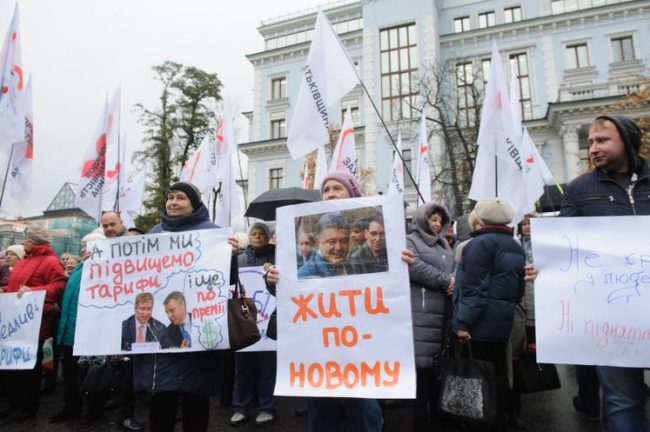 Участники протеста требовали, чтобы президент Петр Порошенко отменил подорожание газа для населения с 1 ноября на 23,5%. К протестующим присоединилась и лидер «Батькивщины» Юлия Тимошенко. Она подчеркнула, не понятно, как можно одновременно на четверть повысить цены на газ, на тепло, на треть уменьшить расходы на субсидии и одновременно рассказывать об усилении программы на субсидию. Она заявила, что ее политическая сила будет бороться против «политики уничтожения нации».