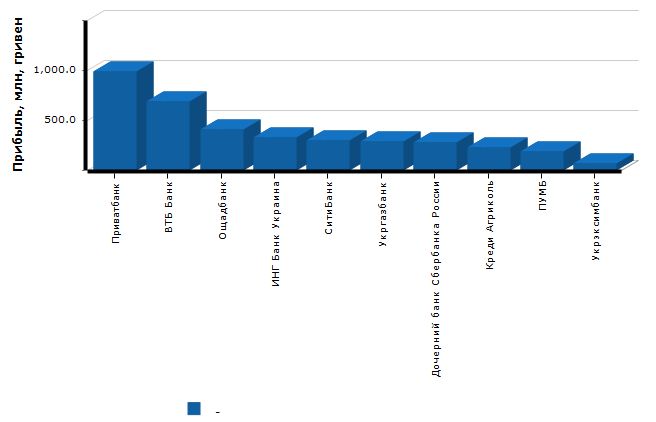 Возглавляет десятку прибыльных банков страны крупнейшее отечественное финучреждение (164,6 млрд. грн активов) — ПриватБанк. По итогам девяти месяцев, текущего года банк Игоря Коломойского получил 991 млн. грн чистой прибыли.