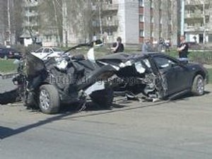 В результате столкновения Toyota Camry разорвало и неуправляемый седан, точнее, то, что от него осталось, вылетел на встречную полосу.К величайшему удивлению свидетелей ДТП, ни водитель Camry ни его пассажир не пострадали. Оказалось, что за рулем Toyota Camry был таксист одной из местных служб таксист, который как раз вез пассажира.