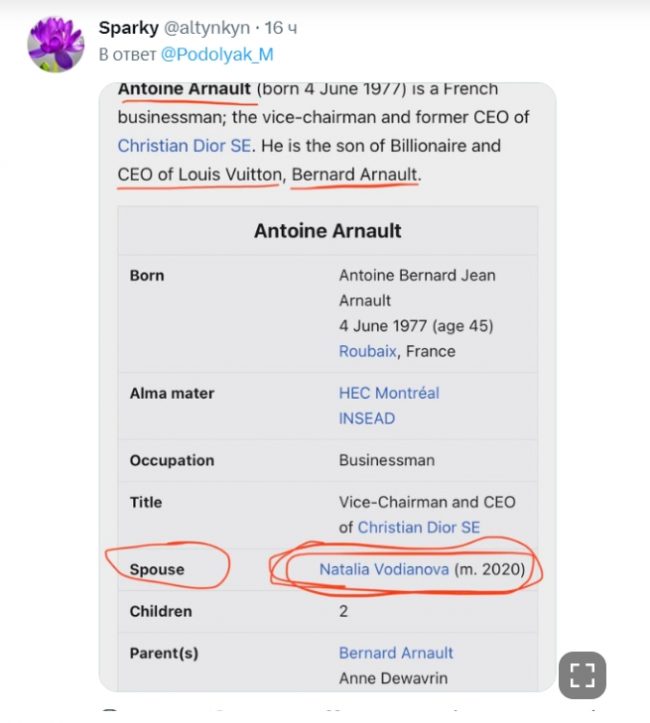Также в комментариях напомнили, что брендом владеет французская транснациональная компания LVMH, в состав директоров которой входит Антуан Арно — нынешний муж россиянки Натальи Водяновой, которая хоть и осудила войну в соцсетях, но продолжает устраивать гламурные вечеринки для богатых русских в Дубае.