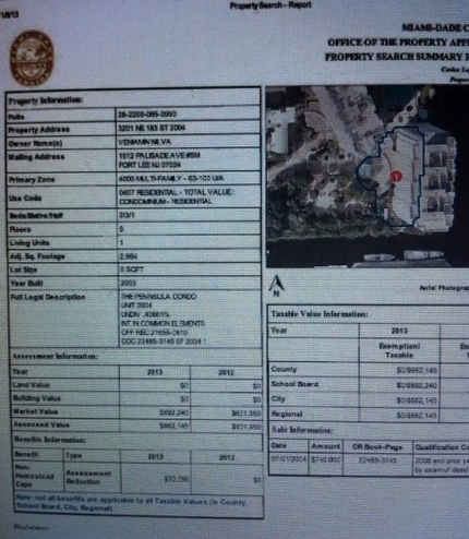 Площадь жилья – 277 кв. м, или почти 3 тысячи квадратных футов в американской системе измерения. Апартаменты на две отдельные спальни и три ванные комнаты. Судя по отчету, стоимость апартаментов за последний год выросла. Если в 2012 году рыночная стоимость недвижимости составляла 602 тысячи долларов, то в 2013 она выросла почти до 700 тысяч. При этом оценочная стоимость тоже подросла, но не так существенно. Какие доказательства, что эти апартаменты действительно принадлежат Евгении Тимошенко (Карр)?