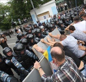 В п`ятницю ввечері МВС повідомило, що співробітник спецпідрозділу "Беркут" законно застосував спецзасіб - балончик з аерозолем - під час зіткнень з опозицією 24 серпня.