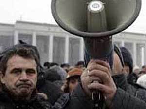 Перша нечисленна акція проходить навпроти Кабміну, суть якої полягає в недопущенні повтору фінансових пірамід на кшталт МММ. Близько ста осіб з гаслами "Не допустимо МММ" розмістилися напроти Кабміну.