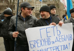 Активисты возле здания МВД скандируют: "Отчитывайтесь" и "Выходите к нам". Они требуют правильного расследования избиения журналистки Т.Черновол, найти настоящую причину ее избиении, а также заказчиков избиения, потому что активисты не верят в версию избиения на основании бытового конфликта. Они требуют обнародовать все факты этого дела. Кроме того активисты требуют расследовать предыдущие факты избиения активистов Евромайдана, а также обнародования этой информации.