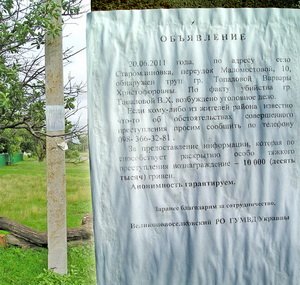 Управление по связям с общественностью МВД Украины о раскрытии этого преступления сообщило в своём прессрелизе от 27 июня 2011 г.: «В Великоновоселковском районе Донецкой области в результате проведения оперативно-розыскных мероприятий задержан 28 летний житель района. Предварительно установлено, что он вечером 19 июня проник в дом местной жительницы с целью кражи, но был застигнут хозяйкой и причинил ей смертельные телесные повреждения».