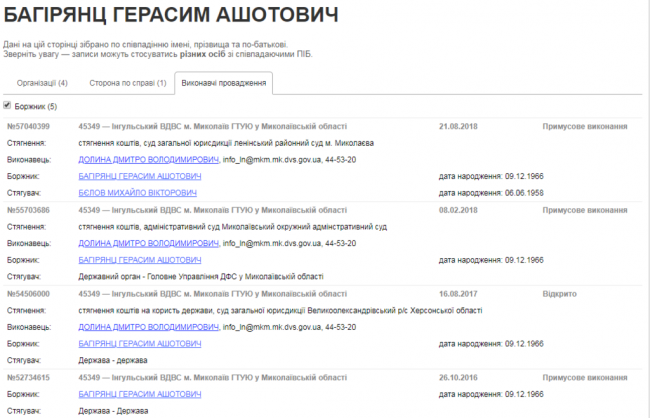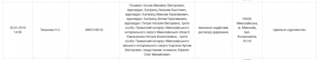 Из материалов судебного дела следует, что погибший Михаил Белов, 1958 года рождения, требовал разорвать договор дарения двух домов в Николаеве. Один из них расположен по улице Линия, 9, второй – в переулке Бульварный, 2. Несколько лет назад Багирянц занял у Белова крупную сумму денег, в залог передал эти дома. Деньги не вернул, а дома переписал на двух сыновей и женщину по фамилии Петрик.