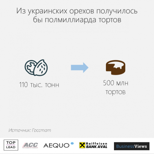 Украина — 6-й в мире экспортер грецких орехов, поэтому их едят и пекут с ними торты по всему миру. Экспорт грецких орехов приносит украинским аграриям более 100 миллионов долларов в год.