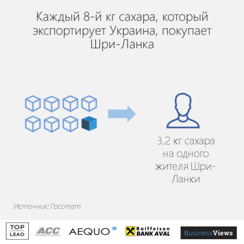 А каждый 8-й килограмм украинского сахара идет в экзотическую страну. Впрочем, они не только пьют с ним чай или используют в кулинарии, а и подделывают с помощью сахара чай. Сахар делает чайный лист темным, отчего его стоимость растет. Так что если любишь цейлонский чай, помни, что его насыщенный цвет могли обеспечить украинские производители сахара.