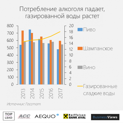 В Украине от 10 до 14% всех смертей обусловлены употреблением алкоголя, а это 78 000 потерянных жизней за 2016 год — как половина населения немаленького Краматорска. Прежде всего, люди погибают от отравлений, цирроза печени, рака, вызванного злоупотреблением алкогольными напитками, и в автомобильных авариях, спровоцированных пьяными. Так что падение потребления алкогольных напитков — хороший знак, а лишнюю продукцию украинские производители успешно продают за границу.