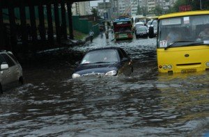 Из-за сильного дождя вчера, 6 июля, оказалось полностью парализованным движение транспорта в разных районах столицы Украины – городе Киеве.