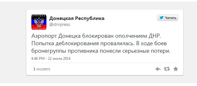 Представители ополчения ДНР заявили, что аэропорт Донецка блокирован. В ходе боев бронегруппы противника понесли серьезные потери.