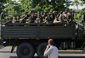 Константин Ильченко - представитель Общественного совета народного доверия Луганской области заявил, что в районе лесополосы около села Перевальное замечены тридцать российских КАМАЗов и 10 БТРов, все они были с боевиками внутри.