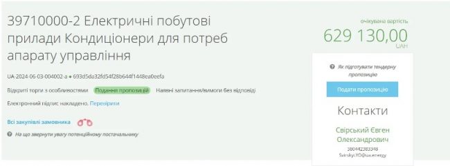 И пока украинцы сидят без света, в некоторых учреждениях критической инфраструктуры заказывают себе кондиционеры на миллионы гривен. Среди тех, кто во время дефицита тока хотел купить кондиционер: компания «Укрэнерго», энергетические компании, правоохранители и государственные компании. Некоторые из них уже начали отменять тендеры.
