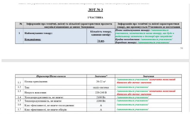 Судя по характеристикам, такие кондиционеры необходимы для охлаждения больших помещений (80-125 квадратов). Тендер был опубликован 3 июня – в период действия жестких графиков отключений и значительного дефицита электроэнергии.