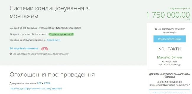 «Закарпатьеоблэнерго» планирует потратить на кондиционеры 1,7 млн грн. 4 июня они опубликовали тендер на покупку целого ряда оборудования для кондиционирования. К примеру, канальный кондиционер «С&Н» 16,0/17,0 кВт, серия R2 «Cooper&hunter» (известный производитель кондиционеров).