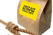 Для тех, кто решил спасаться в индивидуальном порядке, развернута бойкая торговля «предметами для выживания» и «наборами на конец света». Зачастую это просто коробки с армейскими и аварийными рационами (пайками), в которых можно найти немало вкусного и полезного – их продают по цене в 2-3 раза выше той, по которой их можно спокойно заказать по интернету у производителя. Иногда это простенькие рюкзаки, набитые всяким хламом и обычными консервами. А есть и чисто шуточные наборы. Например, в Мексике «набор черного дня» включает в себя бутылочку хорошего ликера и бланк для составления завещания. А в России в подобный набор вложили водку с закуской и… мыло с веревкой. Суровый челябинский юмор!