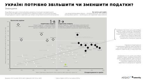 Может ли Украина позволить себе высокие налоги? Да. Но только после того, как мы научимся строить развитые институты и иметь гражданское общество, которое контролирует власть. Впрочем, какую налоговую систему иметь — это выбор граждан: или платить высокие налоги и контролировать эффективность их расходования, или платить низкие налоги и не ожидать много услуг от государства, а самостоятельно заботиться о том, чтобы эффективно потратить собственные средства.