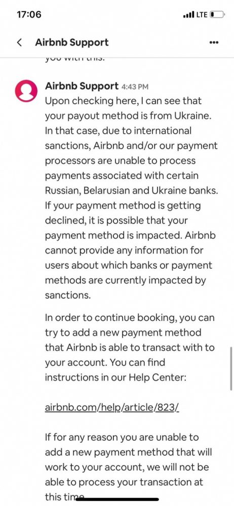 «Я столкнулся с проблемой при попытке арендовать место с помощью сервиса Airbnb. Все мои попытки рассчитаться monobank и PrivatBank карточками были отклонены.