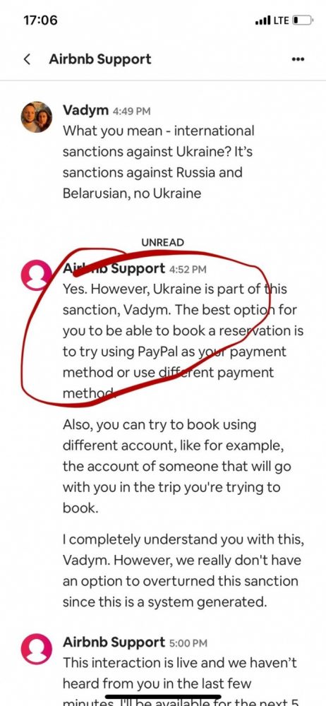 В LinkedIn IT-специалист рассказал: в поддержке сервиса ему сообщили, что Airbnb ввела санкции против Украины.