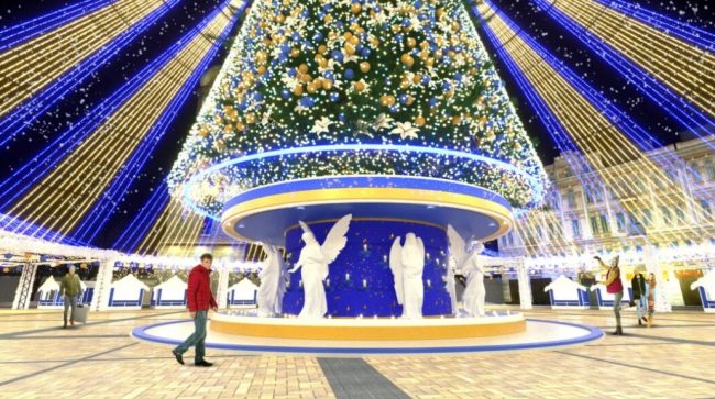 Он уточняет, что разработано несколько вариантов эскизов, которыми может быть главная новогодняя елка 2022-2023. Один из них можно увидеть на иллюстрации.