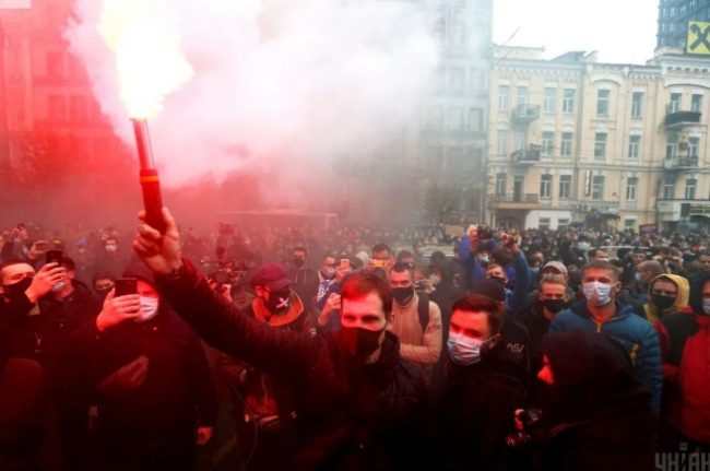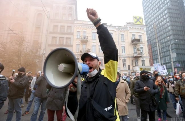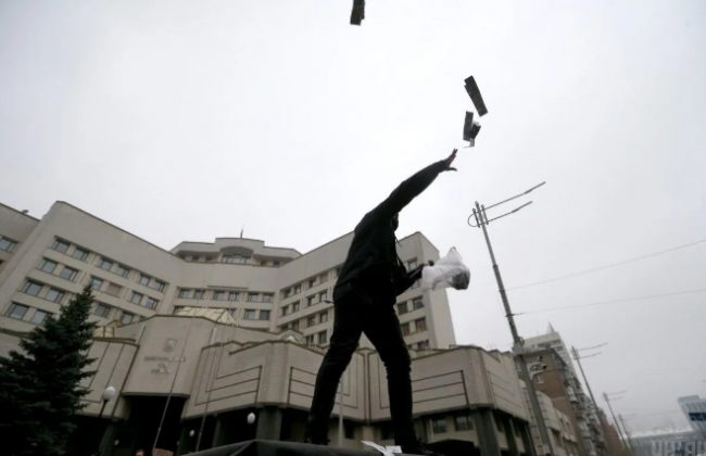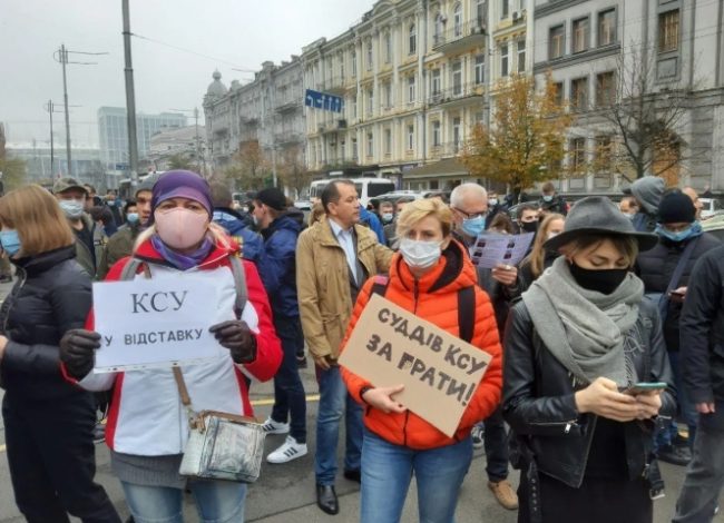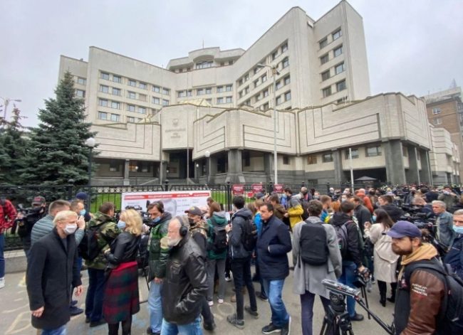 В пятницу, 30 октября, под зданием Конституционного суда Украины прошла акция протеста против решения об отмене ответственности за незаконное обогащение.