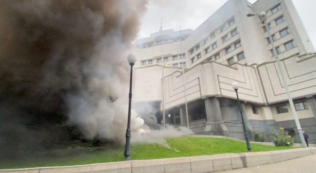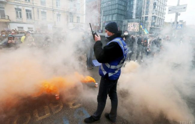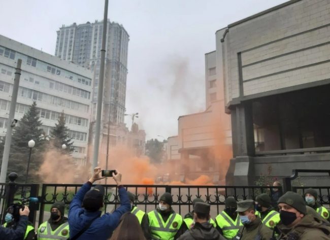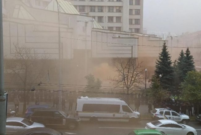 Украинцы забросали дымовыми шашками и шинами КСУ. Фото и видео