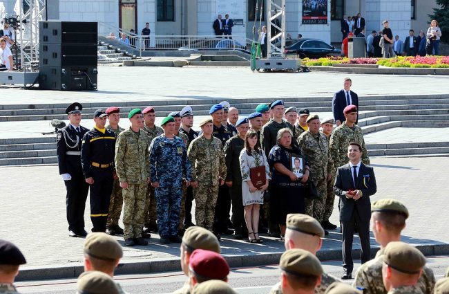 В Киеве прошло Шествие достоинства по случаю 28-й годовщины Дня независимости Украины. В мероприятии принял участие президент Владимир Зеленский и его супруга Елена. Над постановкой мероприятия работали украинские режиссеры Алан Бадоев и Елена Коляденко, которые сознательно отказались от военной техники и сделали акцент на человеке.